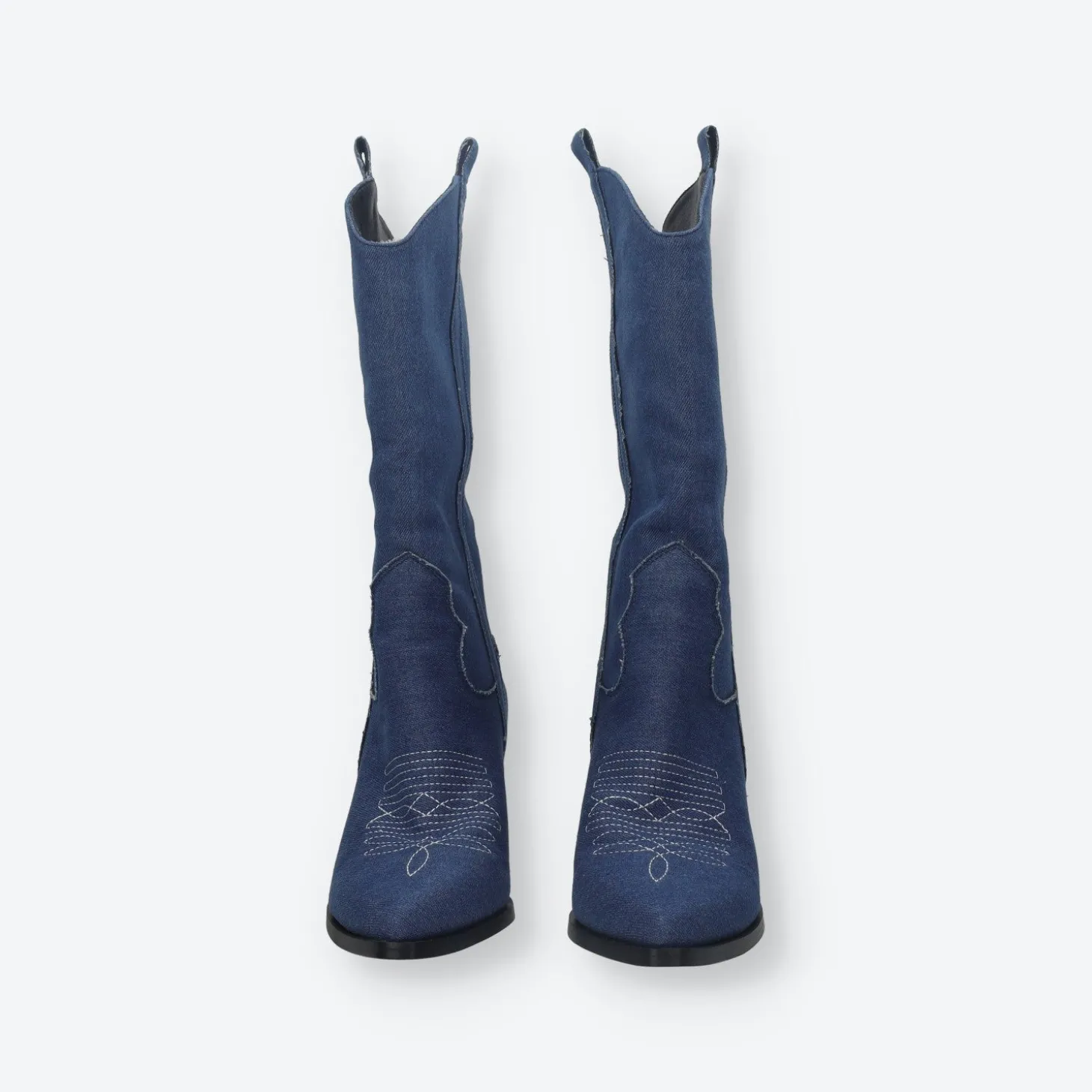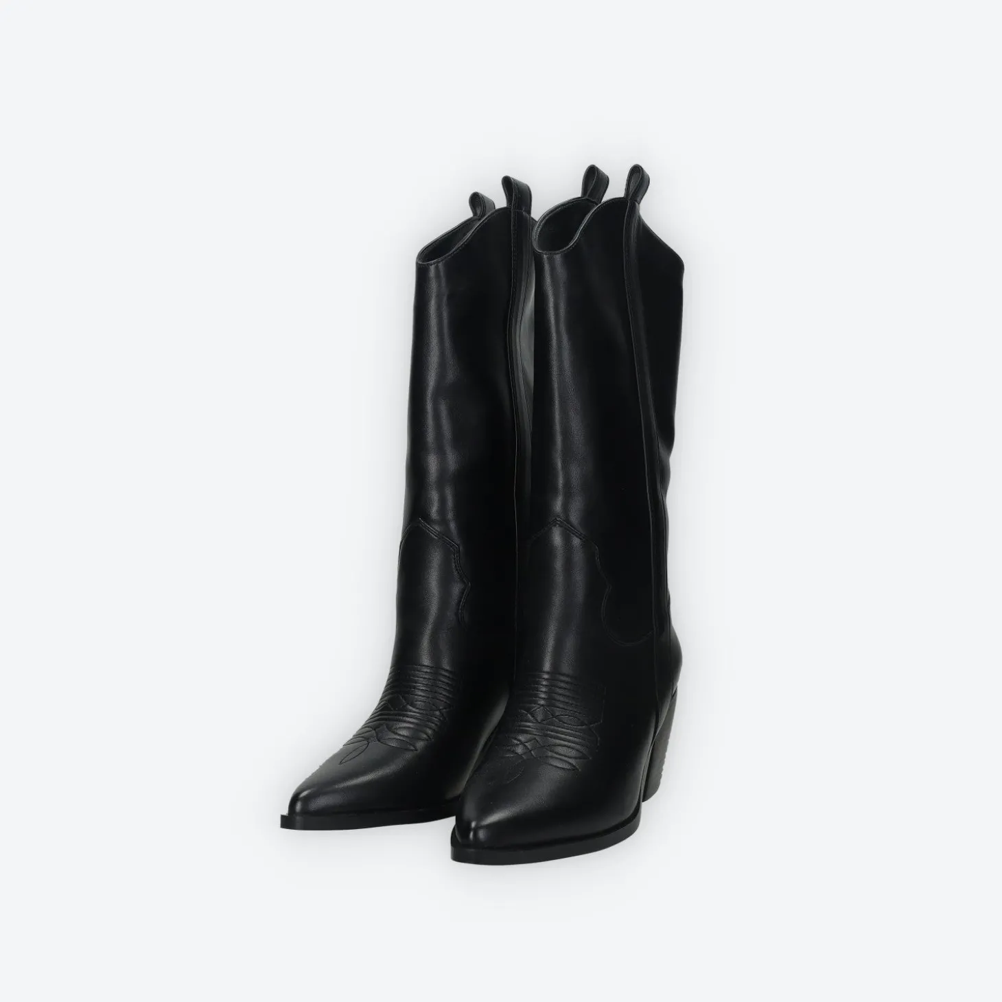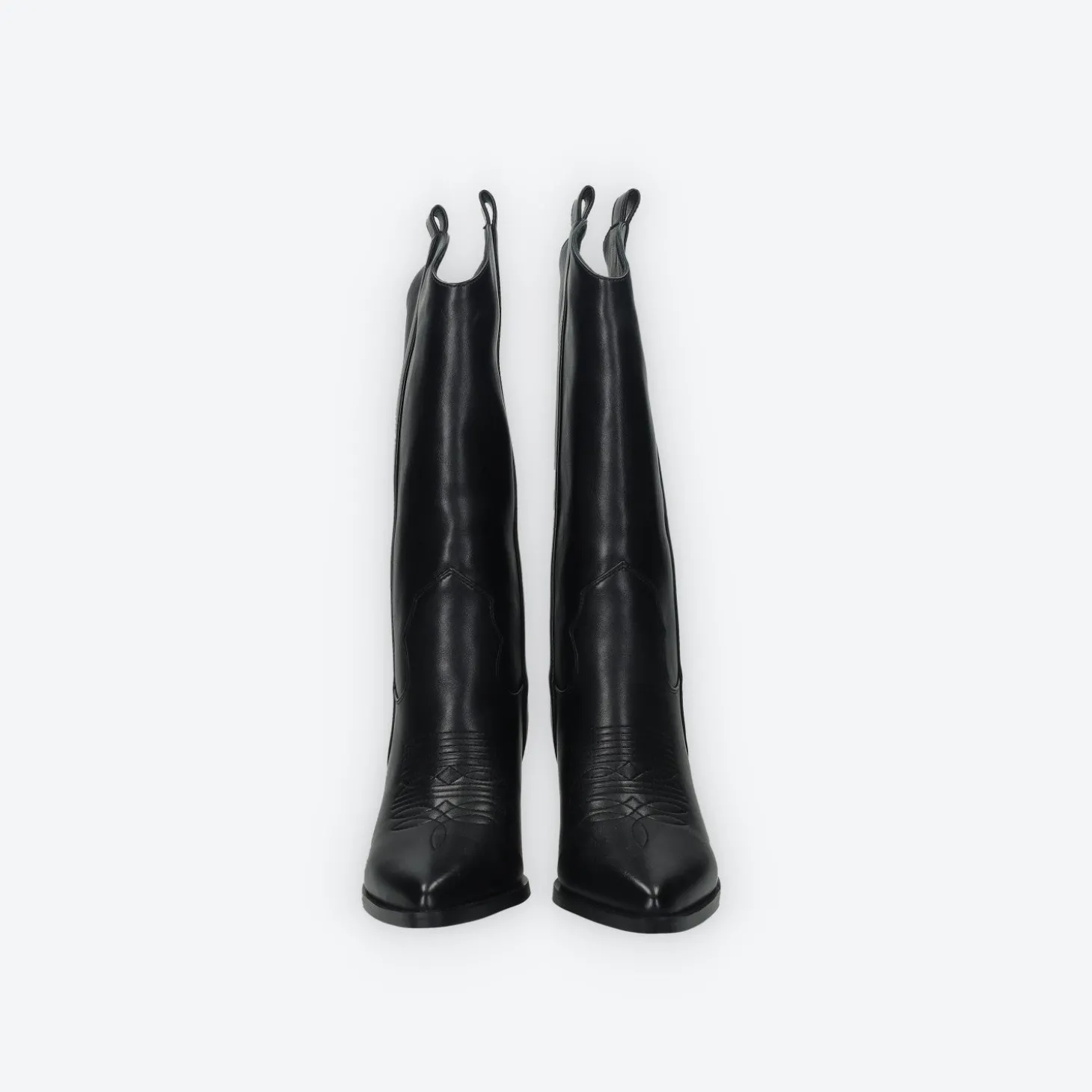 Stivali texani ispirati allo stile Western con punta affusolata e ricami a punto triplo.Tacchi obliqui a punta sfilata.Eleveranno i vostri completi serali verso nuovi livelli di stile. Chiusura con zip.Altezza gambale: 30cmCirconferenza gambale: 37cmAltezza tacco: 7cm