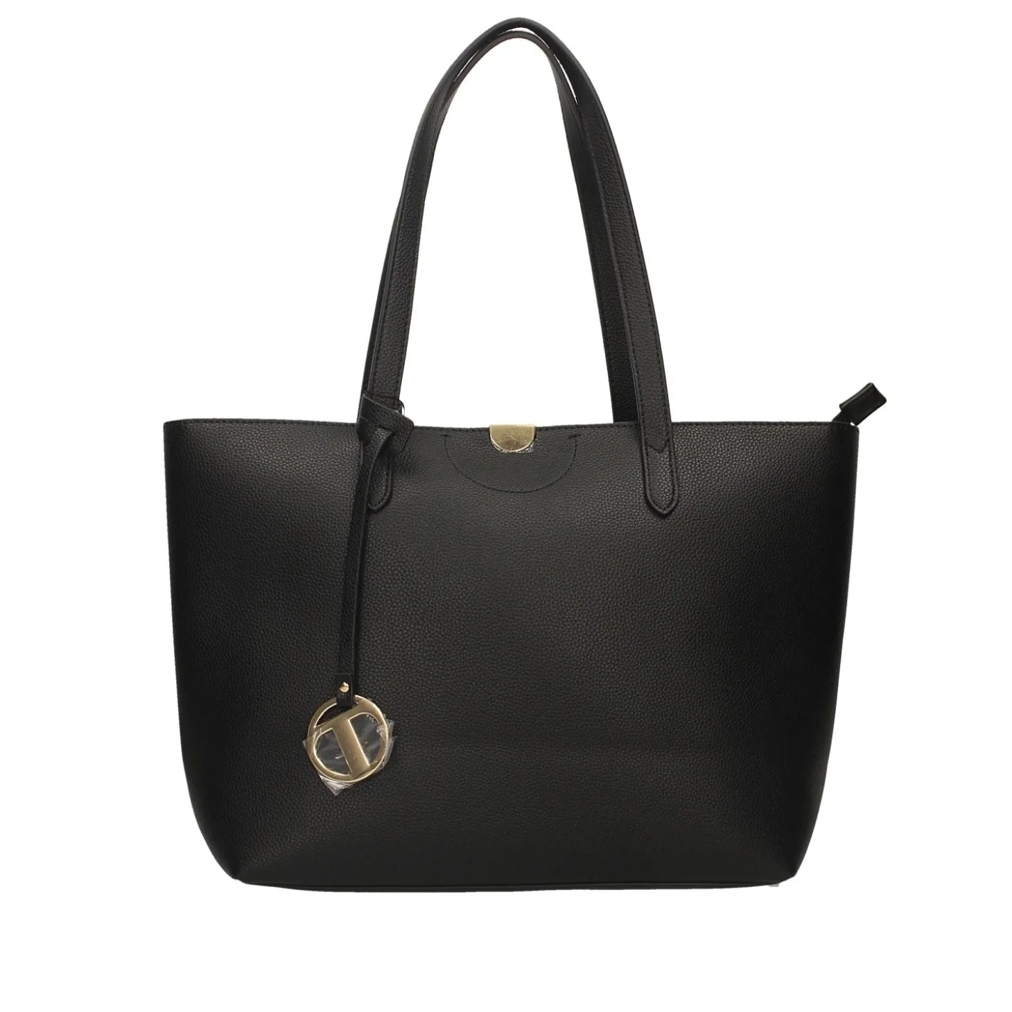 Tote bag dotata di doppio manico con accessorio pendente.Borsa realizzata in ecopelle pregiata con trama mono.Logo acciaio.Gancetti e dettagli in acciaio.Chiusura con zip.Larghezza: 43cmProfondità: 16cmAltezza: 27cm